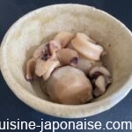 - pluchez les sato-imo et coupez-les en morceaux si nécessaire (pour égaliser la taille). Trempez-les dans l’eau salée (hors ingrédient) pour les rendre moins visqueux.