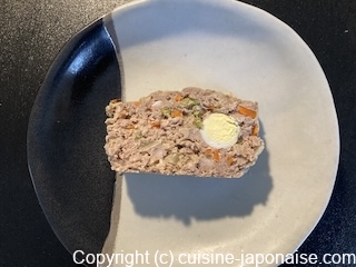 - Dans un moule tapissé de papier sulfurisé, versez la moitié de la préparation 4 et disposez les œufs. Recouvrez de l’autre moitié et aplatissez la surface en faisant attention à ne pas piéger de bulles d’air.