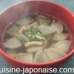KABOCHA TO NEGI, KINOKO NO MISOSHIRU TONYU-JITATE (SOUPE MISO AU LAIT DE SOJA, AU POTIMARRON, AU POIREAU ET AUX CHAMPIGNONS)